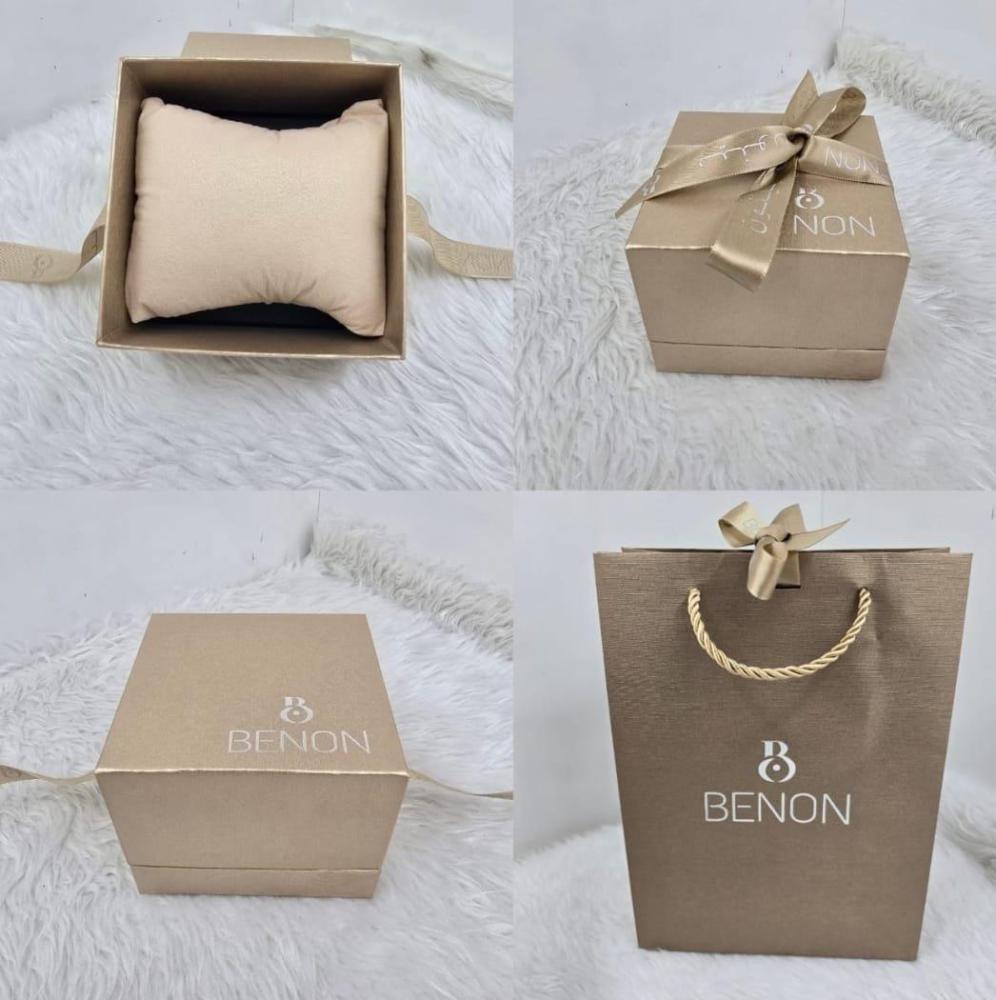 تُقدّم الساعة داخل علبة فاخرة مبطنة، ما يجعلها خياراً مناسباً كهدية أنيقة أو اقتناء شخصي للباحثين عن التميز والأناقة في الإكسسوارات. تجمع هذه الساعة بين المتانة والأناقة، وتُظهر اهتماماً بالتفاصيل يجعل منها قطعة مميزة في أي مناسبة